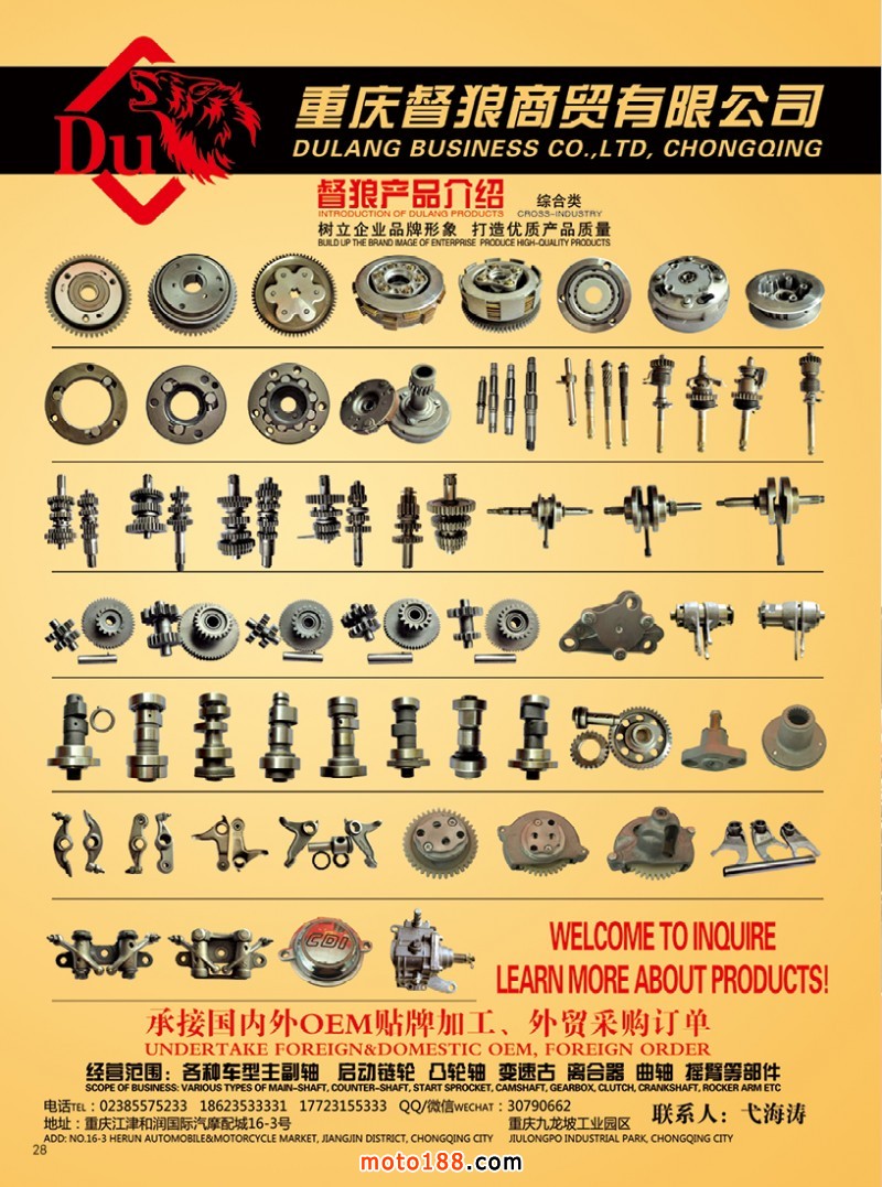 國內首本中英文雙語《中國摩配外貿市場指南》,為從事外貿的企業提供了工具。這本書在廣州秋季全摩會上首發。還將參加明年的江門和重慶春季全摩會。歡迎行業朋友帶上名片或者手機掃二維碼,到4079展位來領取《中國摩配外貿市場指南》和《摩托車與配件》11期雜志。