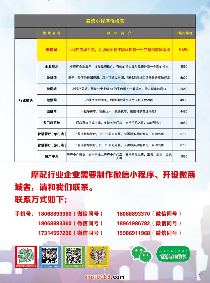 這期雜志及近一階段的工作重點是向行業推廣微信小程序,自2017年1月9日,微信小程序正式上線,實現了觸手可及的夢想,用戶掃一掃或者搜一下即可打開應用,無需安裝或卸載。運用微信開放平臺,共享8億微信用戶,全新平臺流量入口,引領行業變革,不需安裝app,將巨大流量導向自有平臺,打通微信里的每一個用戶。有關小程序的介紹和運用及建立商城等有關說明和報價,詳見本期雜志? 20~23頁。