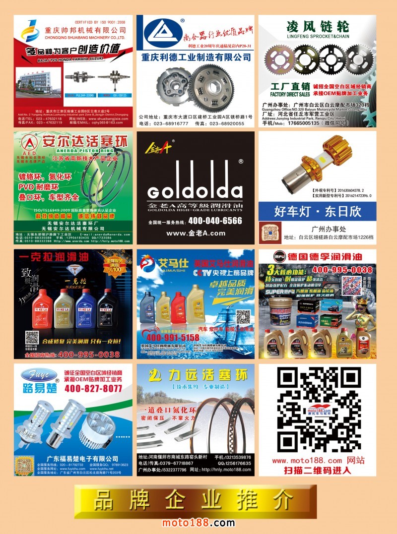 《摩托車與配件》傳統(tǒng)媒體與新媒體的結(jié)合,以及我們腳踏實(shí)地的工作。這一年多來,雜志已經(jīng)華麗的轉(zhuǎn)身,并且拓展出新的發(fā)展空間,可為摩配行業(yè)企業(yè)提供更多的服務(wù)形式。目前我們己基本將全行業(yè)的從業(yè)人員加為微信好友,為國內(nèi)外貿(mào)企業(yè)建了四個(gè)群,同時(shí)又建國內(nèi)五大市場群,方便了業(yè)務(wù)開展和企業(yè)互動(dòng);完成了對全國市場的新一輪的走訪,對國內(nèi)摩配市場有了一個(gè)全面的準(zhǔn)確的認(rèn)識;完成了對目前現(xiàn)有摩配生產(chǎn)廠家的資料更新。2017我們蓄勢待發(fā),2018我們揚(yáng)帆起航!