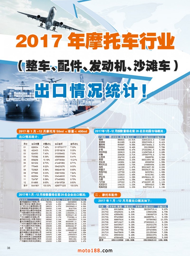 《摩托車與配件》傳統媒體與新媒體的結合,以及我們腳踏實地的工作。這一年多來,雜志已經華麗的轉身,并且拓展出新的發展空間,可為摩配行業企業提供更多的服務形式。目前我們己基本將全行業的從業人員加為微信好友,為國內外貿企業建了四個群,同時又建國內五大市場群,方便了業務開展和企業互動;完成了對全國市場的新一輪的走訪,對國內摩配市場有了一個全面的準確的認識;完成了對目前現有摩配生產廠家的資料更新。2017我們蓄勢待發,2018我們揚帆起航!