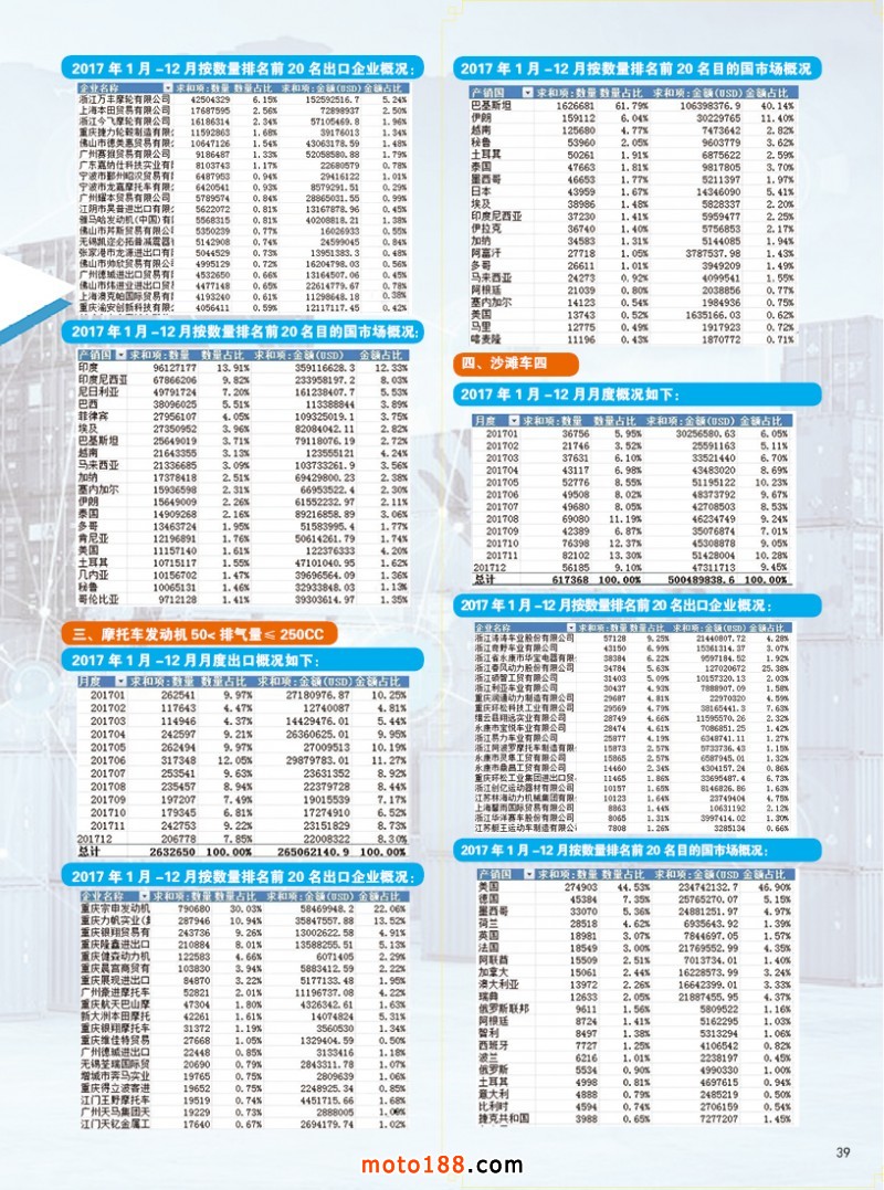 內39 2017年摩托車行業出口情況統計!