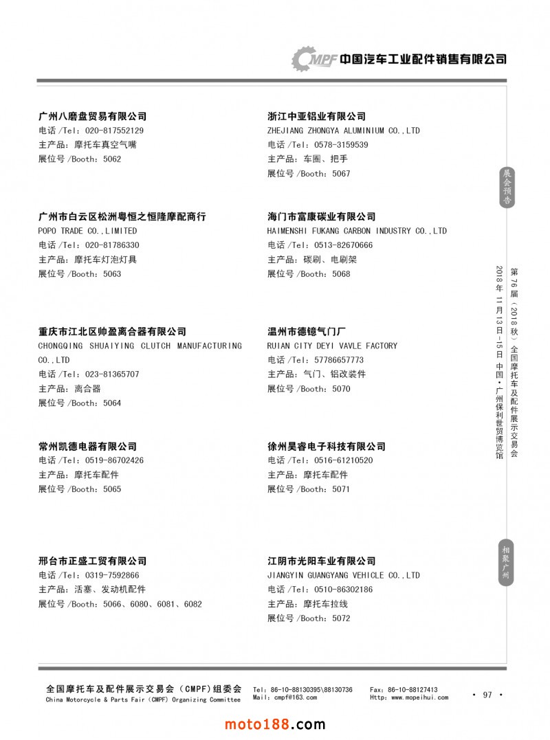 內97 第75屆(2018春)全國摩托車及配件展示交易會-重慶站參展企業信息
