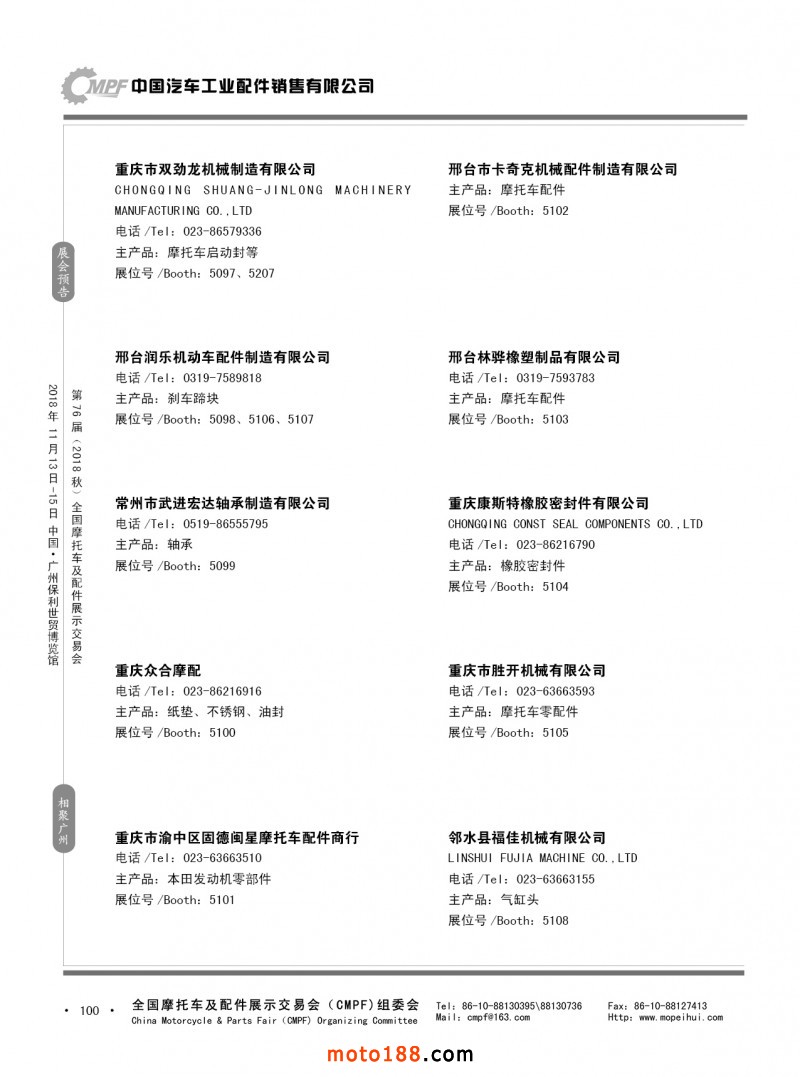 內100 第75屆(2018春)全國摩托車及配件展示交易會-重慶站參展企業信息