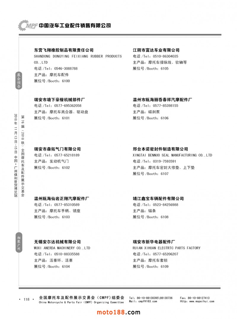 內118 第75屆(2018春)全國摩托車及配件展示交易會-重慶站參展企業信息