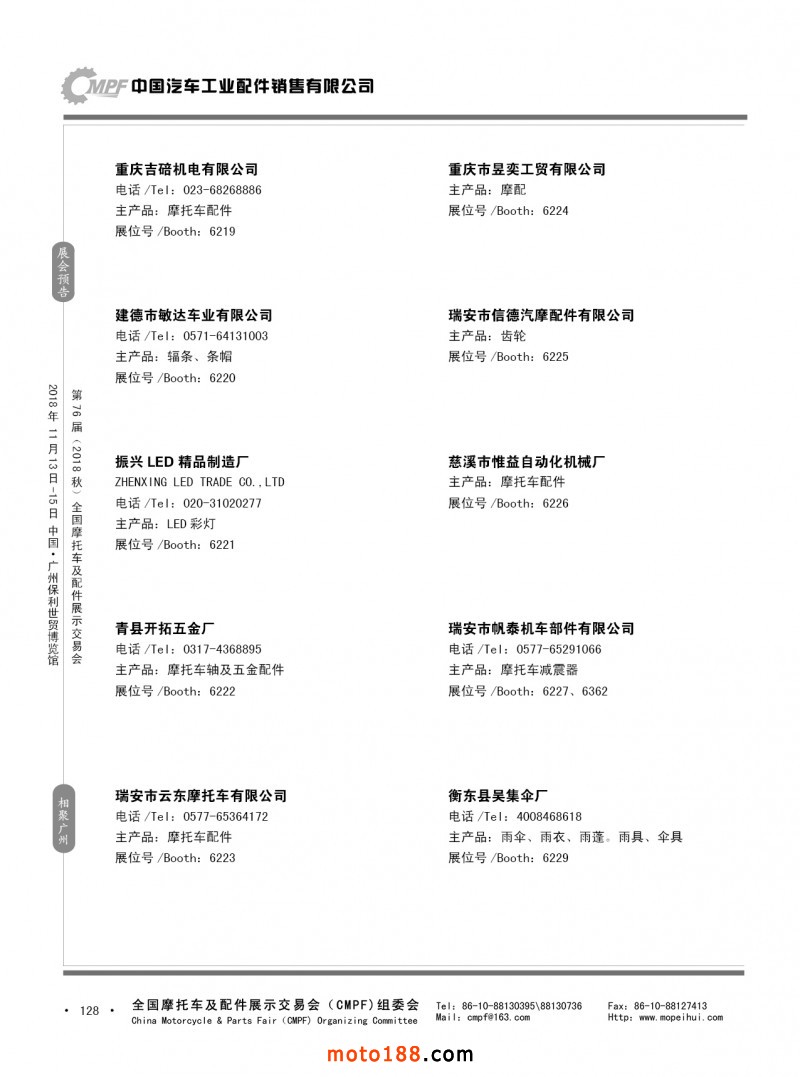 內128 第75屆(2018春)全國摩托車及配件展示交易會-重慶站參展企業信息