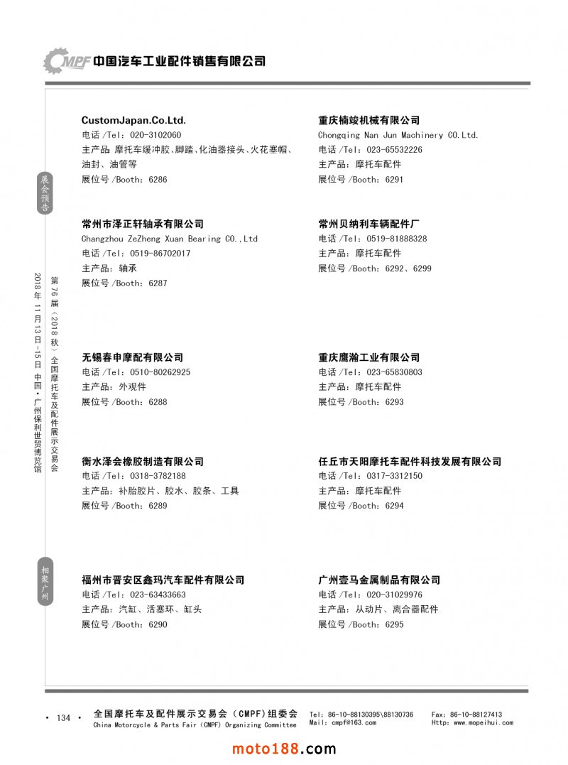內(nèi)134 第75屆(2018春)全國摩托車及配件展示交易會(huì)-重慶站參展企業(yè)信息