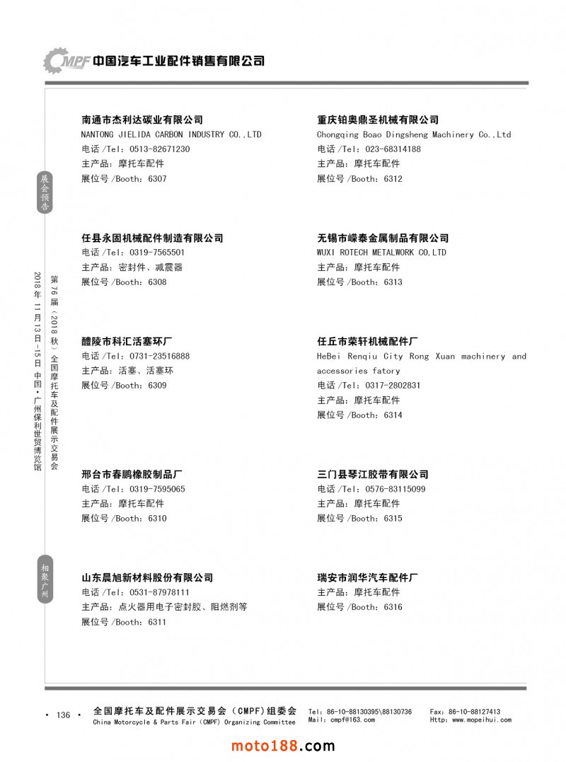 內136 第75屆(2018春)全國摩托車及配件展示交易會-重慶站參展企業信息