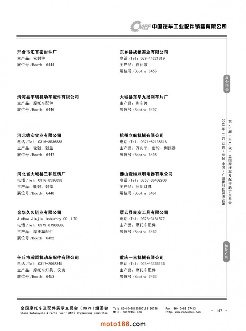 內(nèi)147 第75屆(2018春)全國摩托車及配件展示交易會(huì)-重慶站參展企業(yè)信息