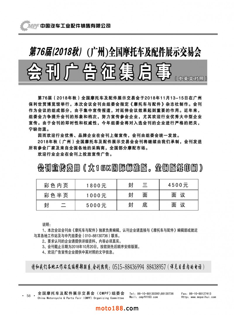 內(nèi)58 第76屆(2018秋)全國摩托車及配件展示交易會-廣州站會刊征集啟事