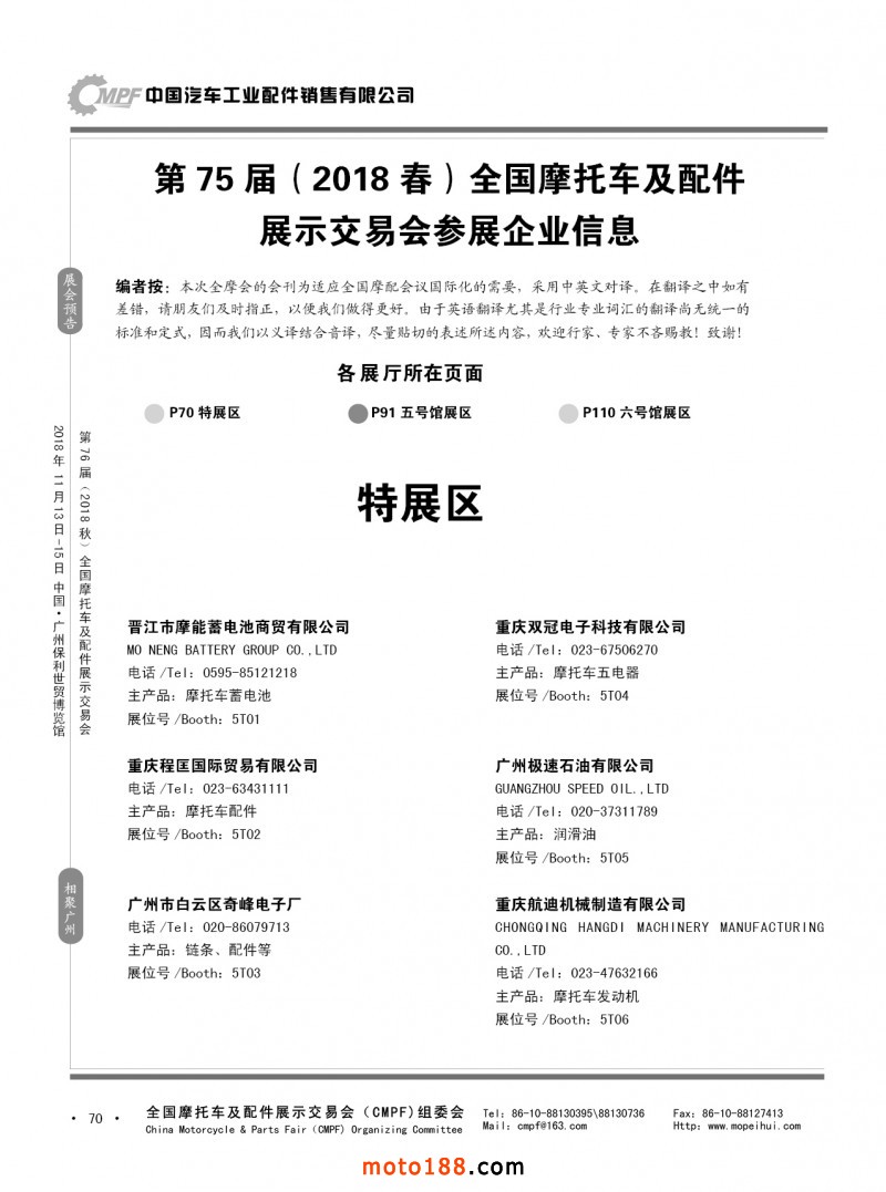 內70 第75屆(2018春)全國摩托車及配件展示交易會-重慶站參展企業信息