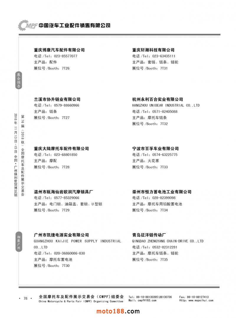 內(nèi)78 第75屆(2018春)全國摩托車及配件展示交易會-重慶站參展企業(yè)信息
