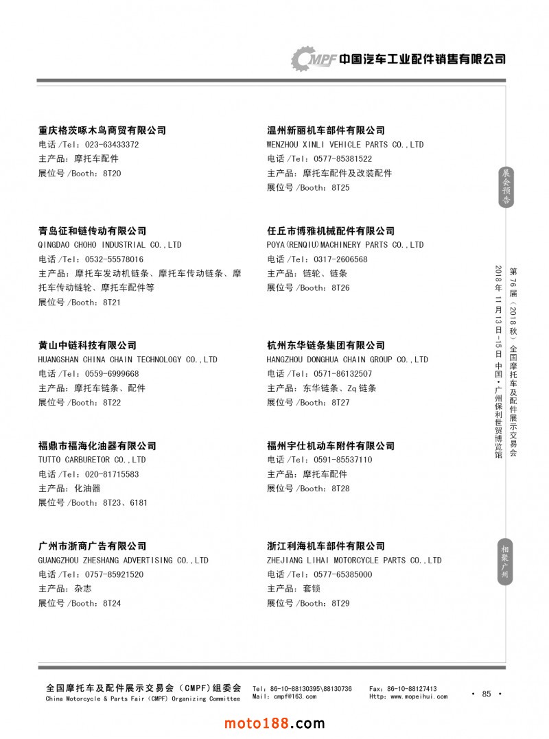 內(nèi)85 第75屆(2018春)全國摩托車及配件展示交易會-重慶站參展企業(yè)信息