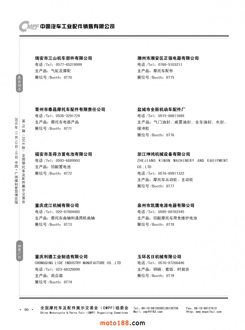 內90 第75屆(2018春)全國摩托車及配件展示交易會-重慶站參展企業信息