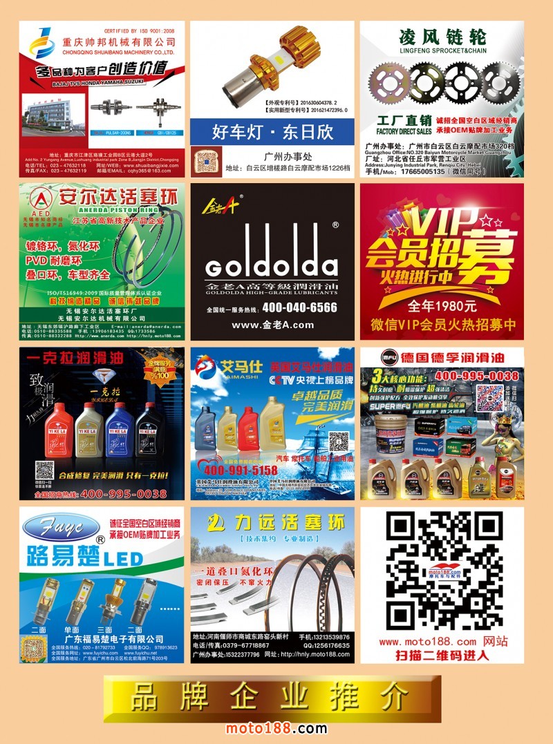 重慶展會我們的展位在5006,歡迎參會的企業(yè)來我們展位領(lǐng)取雜志和《全國摩配市場外貿(mào)指南》,同時(shí)也希望廣大的參展企業(yè),能在會上有一個較好的收獲,春天播種希望,秋天收獲成功。