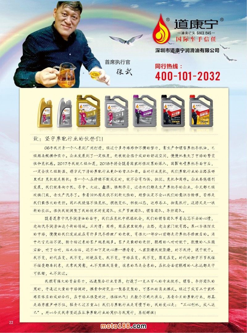 重慶展會我們的展位在5006,歡迎參會的企業來我們展位領取雜志和《全國摩配市場外貿指南》,同時也希望廣大的參展企業,能在會上有一個較好的收獲,春天播種希望,秋天收獲成功。