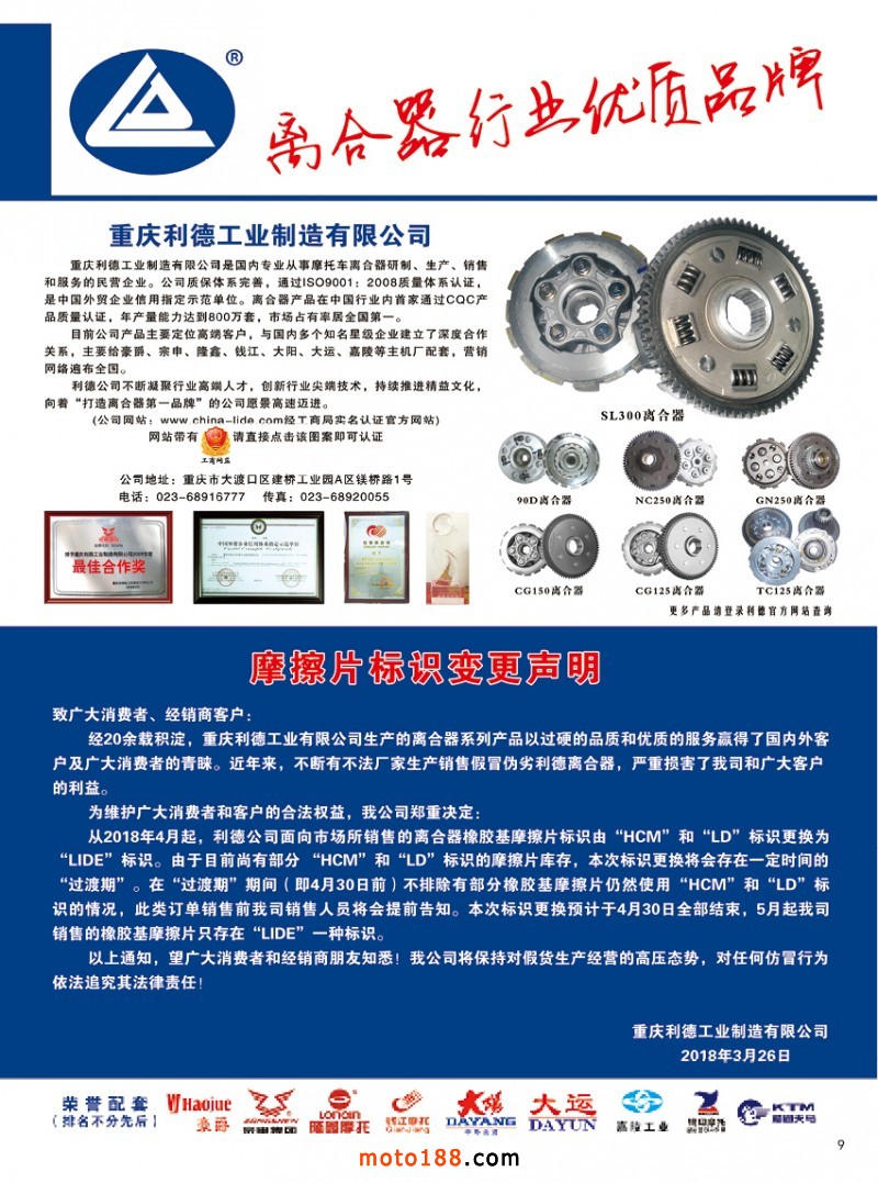 從今年的6月到10月上旬,我們還將對16年編撰的《摩配華南市場指南》進行升級,中英文雙語出版,新版本將在下半年第76屆廣州全國摩托車及配件展示交易會首發;并在廣州重慶摩配市場全面派送;在廣州福星、松南市場門口、及白云210/002/607三個檔口常年設立發行窗口;發行至廣州、重慶、江浙的主要廠家,目前收集整理、核對校正信息,編排翻譯的工作正在進行之中,需要在最新《華南市場指南》升級版做宣傳的企業,請和我們以及各地的工作站人員聯絡。