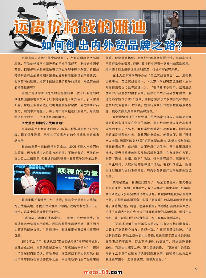 內(nèi)63 遠(yuǎn)離價(jià)格戰(zhàn)的雅迪,如何創(chuàng)出內(nèi)外貿(mào)品牌之路?
