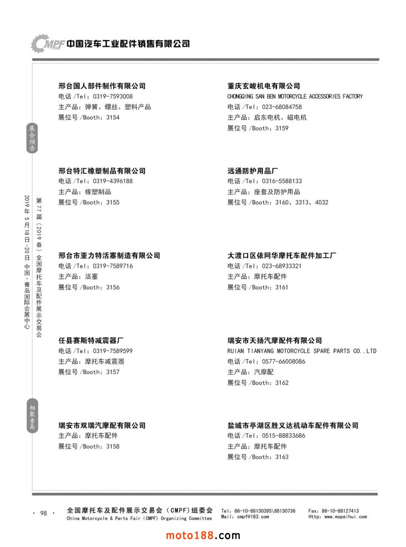 內98 第76屆(2018秋)全國摩托車及配件展示交易會-廣州站參展企業信息