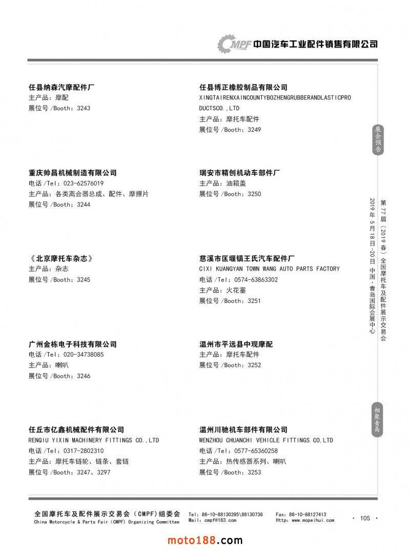 內105 第76屆(2018秋)全國摩托車及配件展示交易會-廣州站參展企業信息