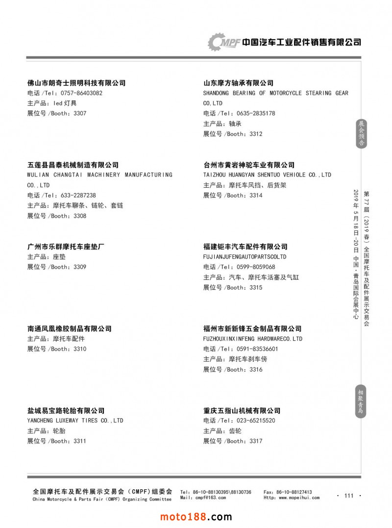 內110 第76屆(2018秋)全國摩托車及配件展示交易會-廣州站參展企業信息