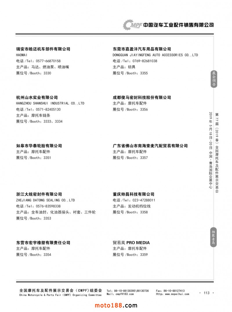 內113 第76屆(2018秋)全國摩托車及配件展示交易會-廣州站參展企業信息
