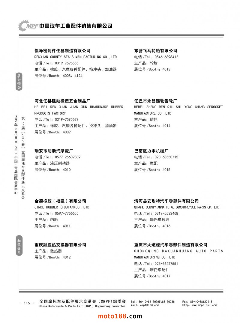 內116 第76屆(2018秋)全國摩托車及配件展示交易會-廣州站參展企業信息