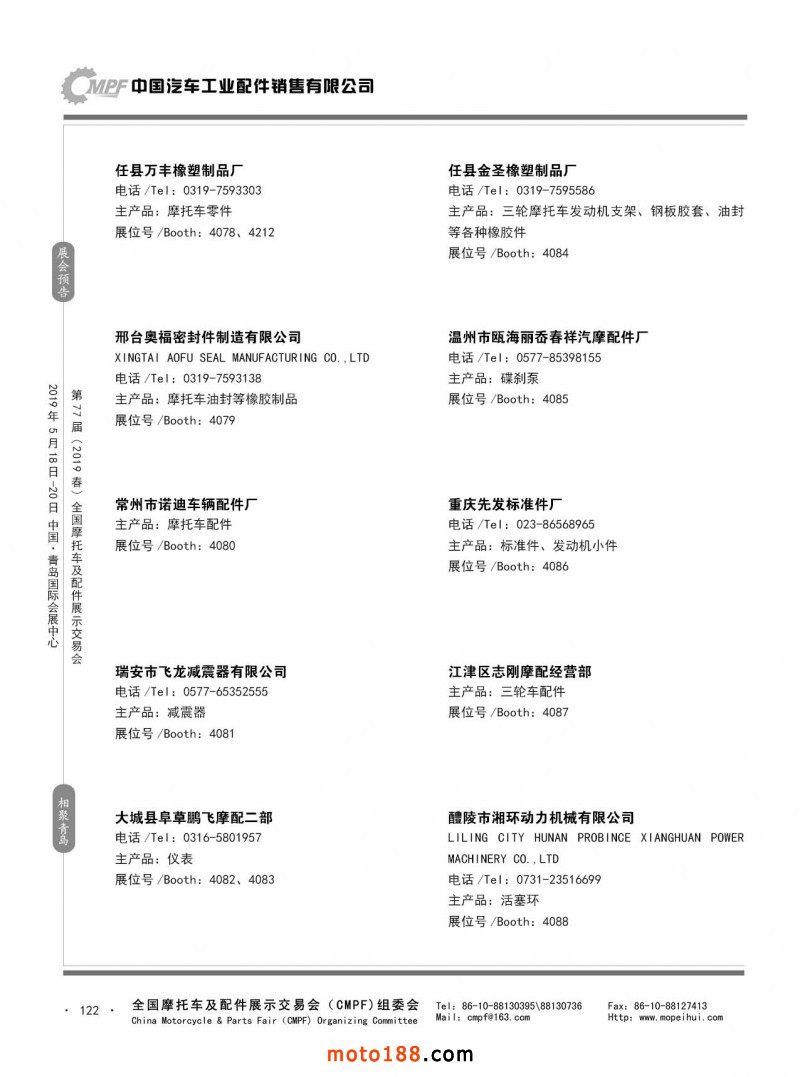 內(nèi)121 第76屆(2018秋)全國摩托車及配件展示交易會-廣州站參展企業(yè)信息