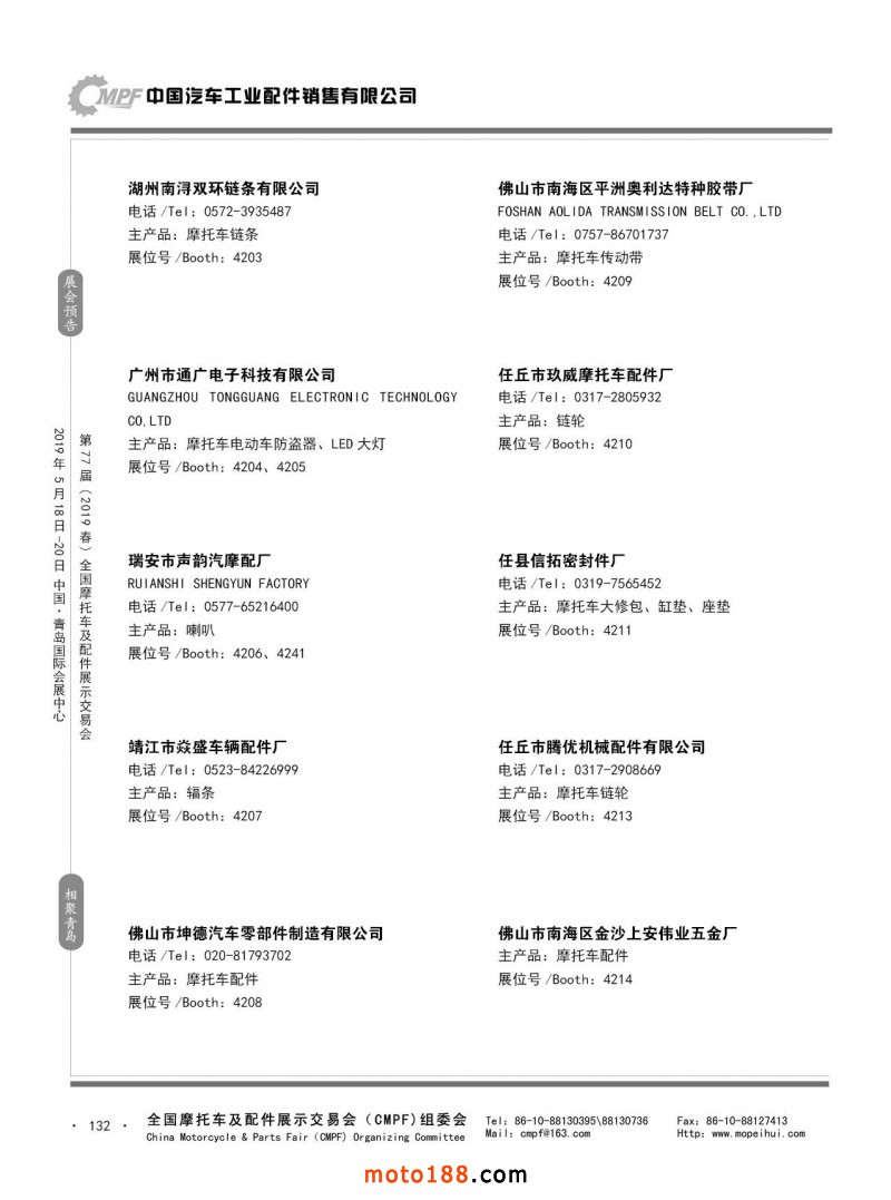 內(nèi)132 第76屆(2018秋)全國(guó)摩托車(chē)及配件展示交易會(huì)-廣州站參展企業(yè)信息