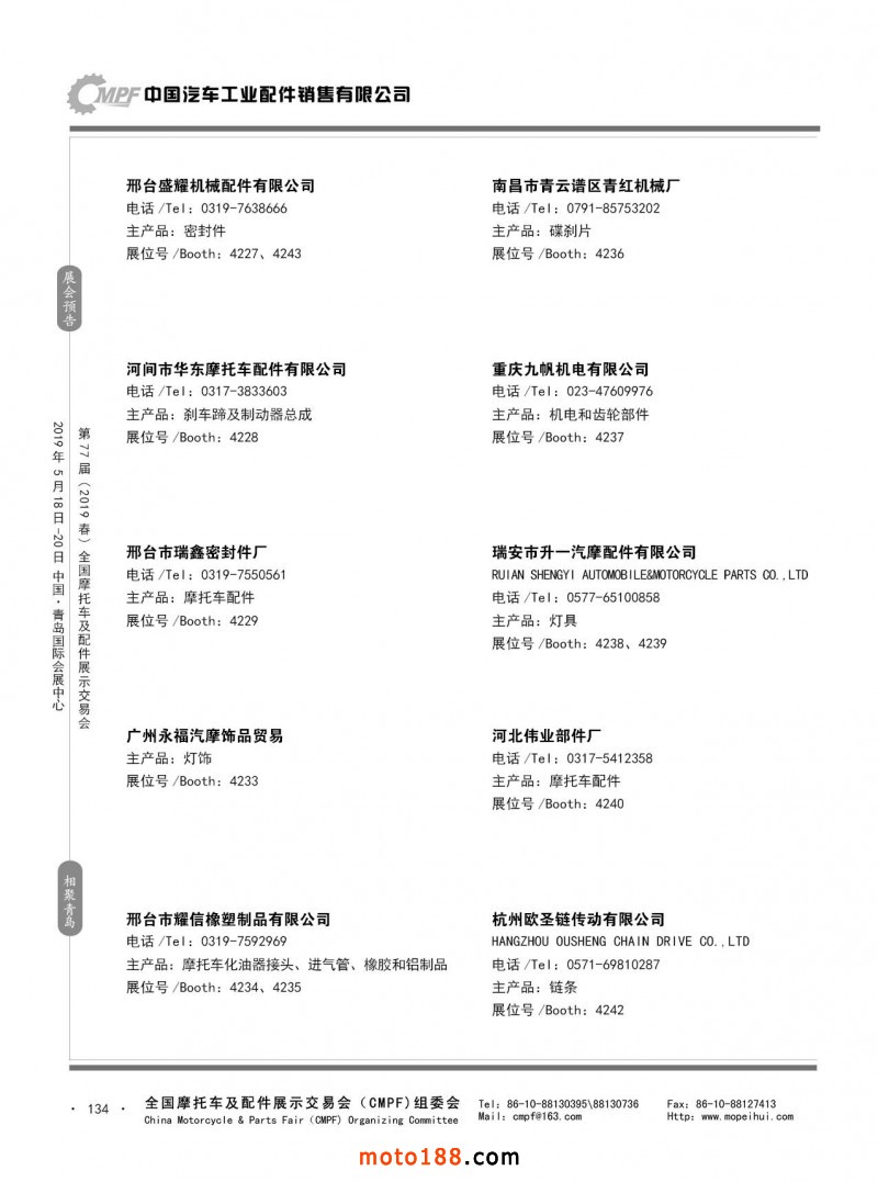 內133 第76屆(2018秋)全國摩托車及配件展示交易會-廣州站參展企業信息