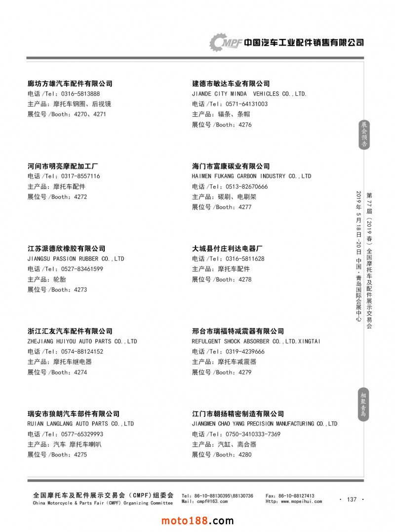 內(nèi)137 第76屆(2018秋)全國摩托車及配件展示交易會-廣州站參展企業(yè)信息
