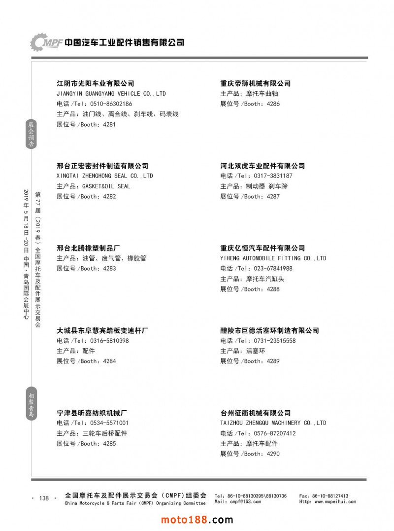 內138 第76屆(2018秋)全國摩托車及配件展示交易會-廣州站參展企業信息