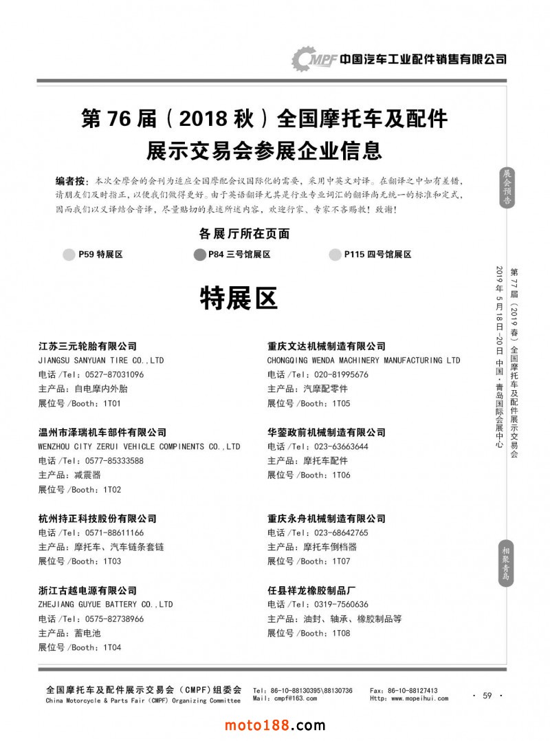內59 第76屆(2018秋)全國摩托車及配件展示交易會-廣州站參展企業信息