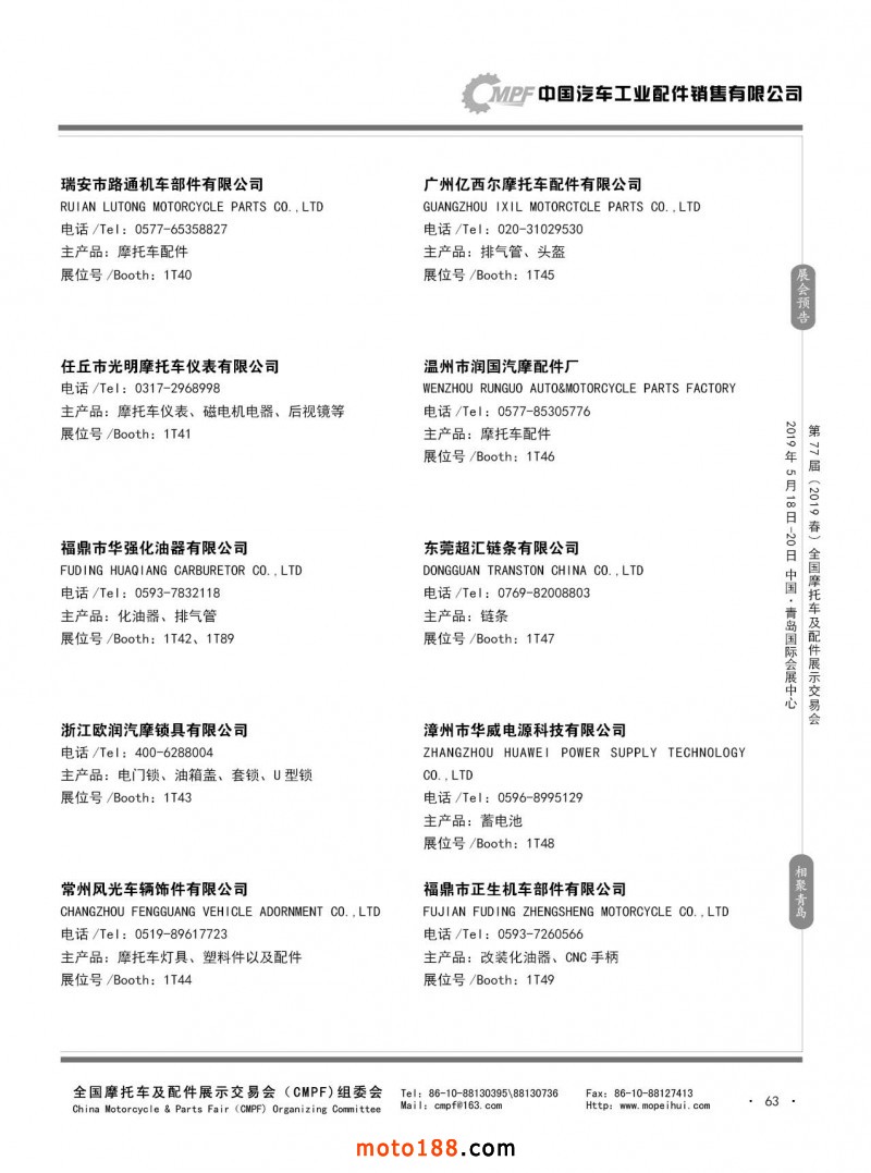 內63 第76屆(2018秋)全國摩托車及配件展示交易會-廣州站參展企業信息