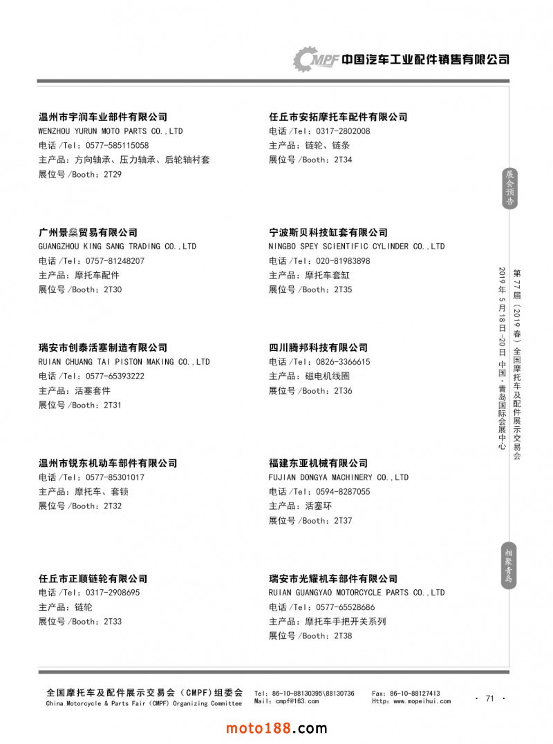 內71 第76屆(2018秋)全國摩托車及配件展示交易會-廣州站參展企業信息
