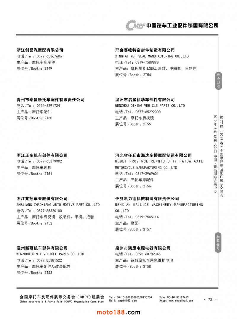 內(nèi)73 第76屆(2018秋)全國摩托車及配件展示交易會(huì)-廣州站參展企業(yè)信息