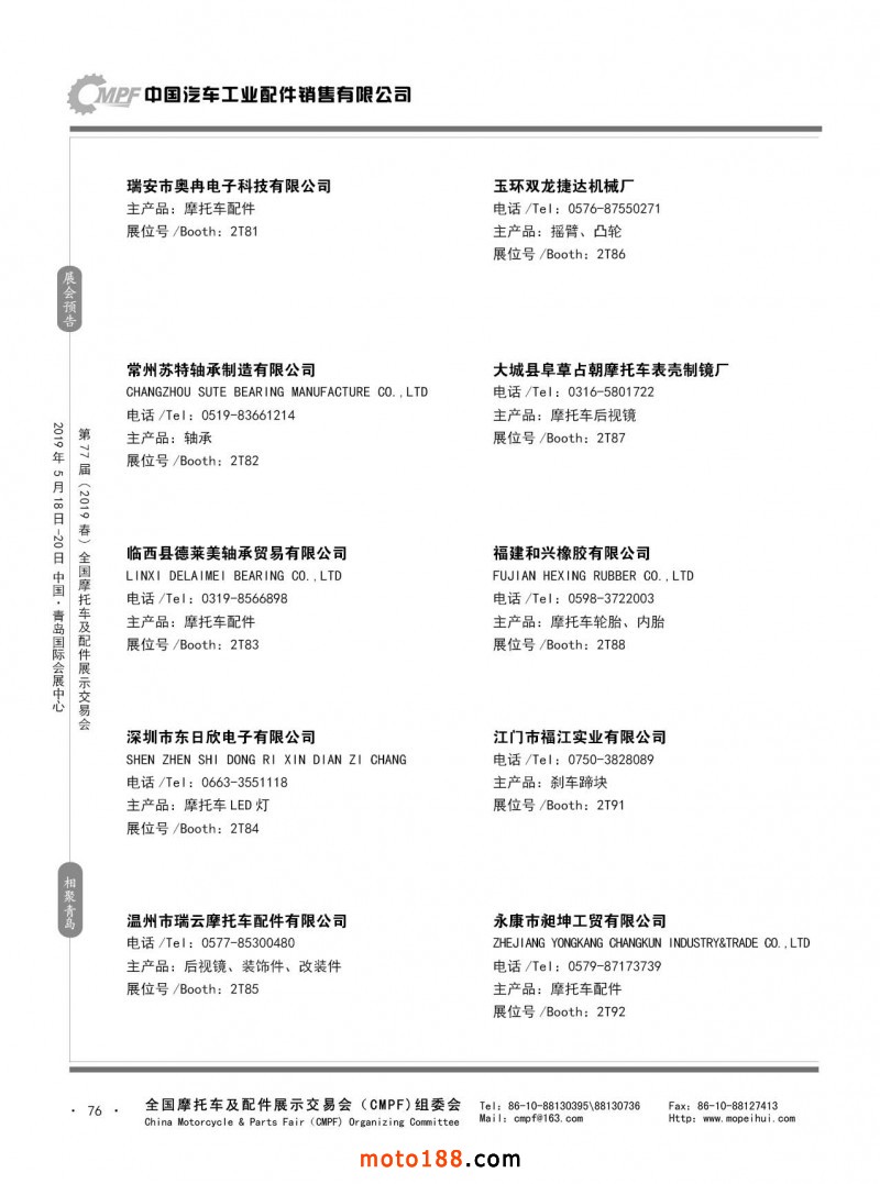 內75 第76屆(2018秋)全國摩托車及配件展示交易會-廣州站參展企業信息