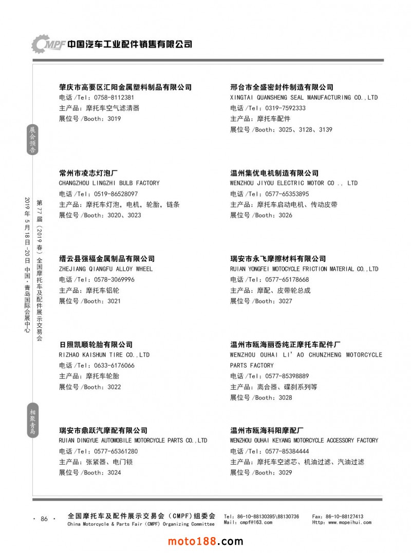 內86 第76屆(2018秋)全國摩托車及配件展示交易會-廣州站參展企業信息
