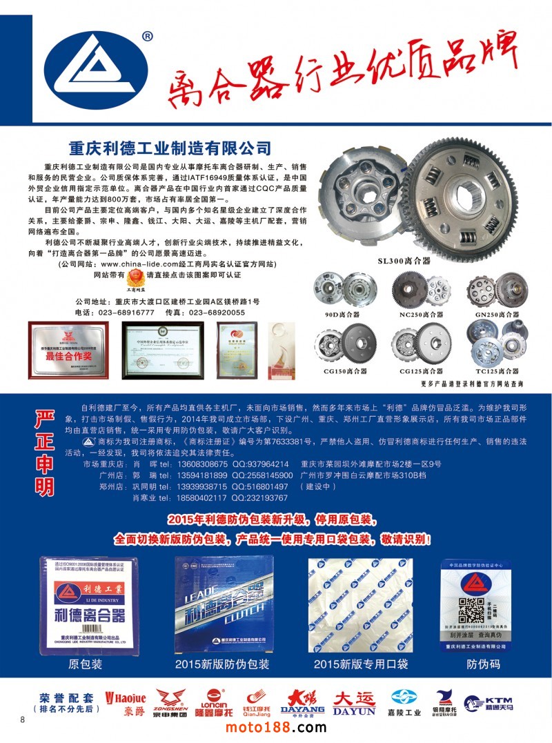第76屆廣州全國摩托車及配件展示交易會(huì)正式開幕,歡迎朋友們來3109號(hào)展位,領(lǐng)取十一月《摩托車與配件》期刊雜志和《摩配華南市場指南》升級(jí)版,分享我們的果實(shí)!《華南指南》還將在廣州、重慶摩配市場全面派送,在廣州福星、松南市場門口、及白云三個(gè)檔口常年設(shè)立發(fā)行窗口;發(fā)行至廣州、重慶、江浙的幾大板塊主要廠家及全國的主要摩配市場。