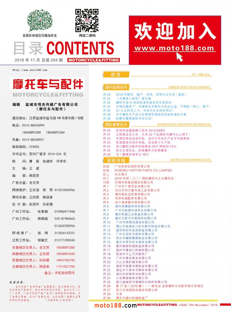 《摩托車與配件》(正在考慮是否變更為《電·摩配件》)不僅服務(wù)于摩配業(yè)之外,將重點(diǎn)增加電動(dòng)車業(yè)(二、三、四輪)的信息服務(wù);同時(shí)增加小型通機(jī)內(nèi)容(涉及工、農(nóng)、林、牧、副、漁、建等產(chǎn)業(yè))信息服務(wù);壓縮出刊期數(shù),適當(dāng)減少?gòu)V告的版面,突出雜志的內(nèi)容,增加原創(chuàng)內(nèi)容,增加可閱讀性,使雜志形成一定的風(fēng)格,將雜志辦成典藏版的精品,每期都有收藏價(jià)值;改變現(xiàn)有發(fā)行模式,電子版將發(fā)送至每一個(gè)好友;紙質(zhì)版實(shí)行精準(zhǔn)投放,有償發(fā)行,直達(dá)目標(biāo)受眾,具體為每個(gè)市場(chǎng)的發(fā)行,按我們提供的名單,由發(fā)行代理送雜志上門,我們按數(shù)量直接支付現(xiàn)金作為發(fā)行費(fèi)。權(quán)威性、收藏性、獨(dú)特性、可讀性這是明年雜志必須具備的特點(diǎn)。明年雜志特殊版面的征集工作已經(jīng)開始,壓縮期數(shù)后,特定版面的數(shù)量將減少,先定先得。
