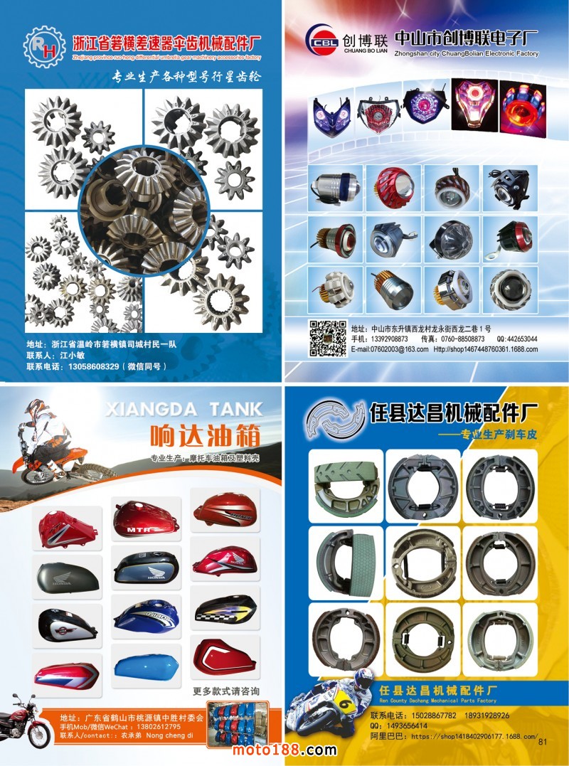 《摩托車與配件》(正在考慮是否變更為《電·摩配件》)不僅服務于摩配業之外,將重點增加電動車業(二、三、四輪)的信息服務;同時增加小型通機內容(涉及工、農、林、牧、副、漁、建等產業)信息服務;壓縮出刊期數,適當減少廣告的版面,突出雜志的內容,增加原創內容,增加可閱讀性,使雜志形成一定的風格,將雜志辦成典藏版的精品,每期都有收藏價值;改變現有發行模式,電子版將發送至每一個好友;紙質版實行精準投放,有償發行,直達目標受眾,具體為每個市場的發行,按我們提供的名單,由發行代理送雜志上門,我們按數量直接支付現金作為發行費。權威性、收藏性、獨特性、可讀性這是明年雜志必須具備的特點。明年雜志特殊版面的征集工作已經開始,壓縮期數后,特定版面的數量將減少,先定先得。