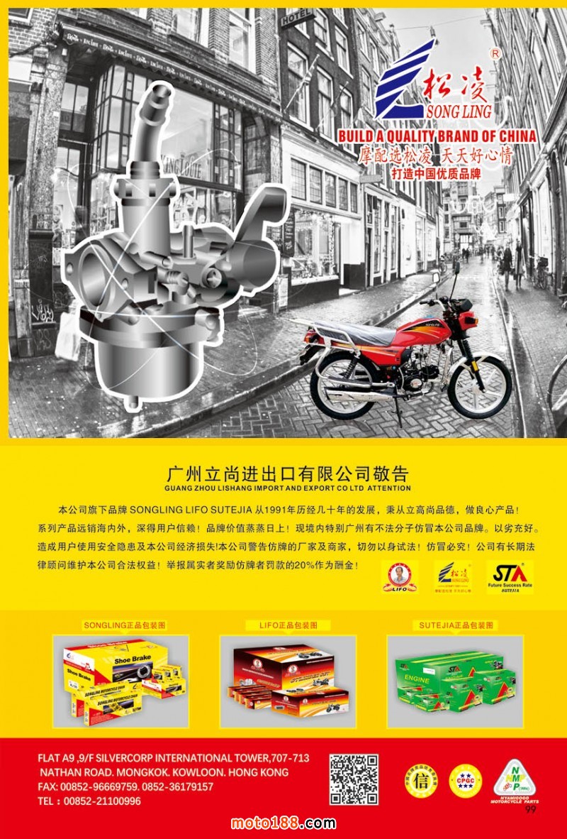 最新升級的《摩配華南市場指南》升級版在第76屆廣州全國摩托車及配件展示交易會上首發(fā),歡迎朋友們來3109號展位。接著將在廣州、重慶摩配市場全面派送,在廣州福星、松南市場門口、及白云三個檔口常年設(shè)立發(fā)行窗口;發(fā)行至廣州、重慶、江浙的幾大板塊主要廠家及全國的主要摩配市場。
