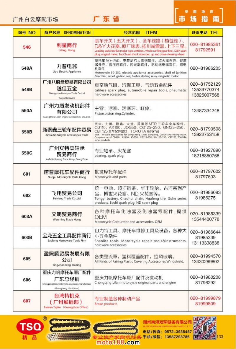 最新升級的《摩配華南市場指南》升級版在第76屆廣州全國摩托車及配件展示交易會上首發,歡迎朋友們來3109號展位。接著將在廣州、重慶摩配市場全面派送,在廣州福星、松南市場門口、及白云三個檔口常年設立發行窗口;發行至廣州、重慶、江浙的幾大板塊主要廠家及全國的主要摩配市場。