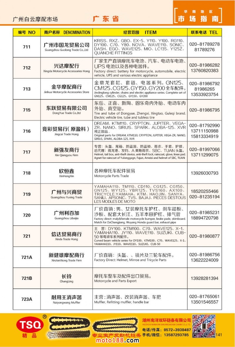 最新升級的《摩配華南市場指南》升級版在第76屆廣州全國摩托車及配件展示交易會上首發(fā),歡迎朋友們來3109號展位。接著將在廣州、重慶摩配市場全面派送,在廣州福星、松南市場門口、及白云三個(gè)檔口常年設(shè)立發(fā)行窗口;發(fā)行至廣州、重慶、江浙的幾大板塊主要廠家及全國的主要摩配市場。