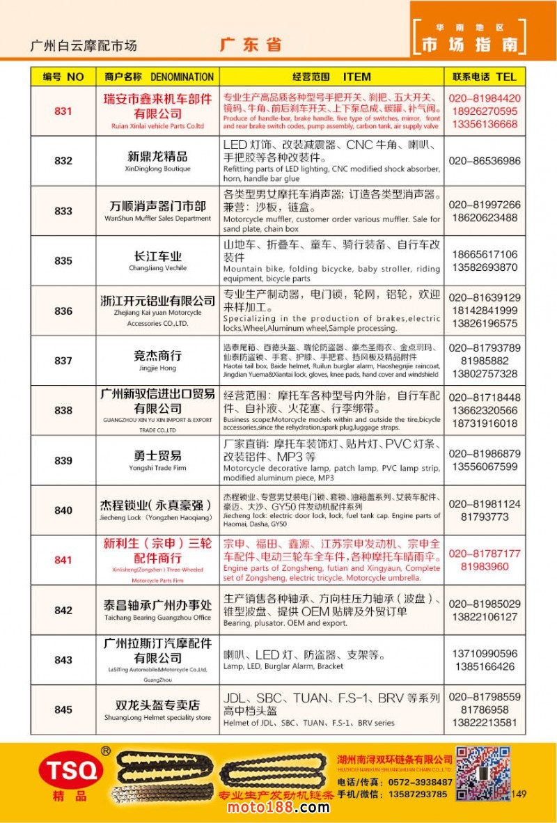 最新升級(jí)的《摩配華南市場(chǎng)指南》升級(jí)版在第76屆廣州全國(guó)摩托車及配件展示交易會(huì)上首發(fā),歡迎朋友們來(lái)3109號(hào)展位。接著將在廣州、重慶摩配市場(chǎng)全面派送,在廣州福星、松南市場(chǎng)門口、及白云三個(gè)檔口常年設(shè)立發(fā)行窗口;發(fā)行至廣州、重慶、江浙的幾大板塊主要廠家及全國(guó)的主要摩配市場(chǎng)。