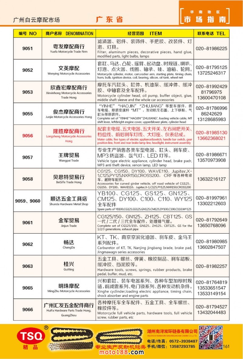 最新升級的《摩配華南市場指南》升級版在第76屆廣州全國摩托車及配件展示交易會上首發,歡迎朋友們來3109號展位。接著將在廣州、重慶摩配市場全面派送,在廣州福星、松南市場門口、及白云三個檔口常年設立發行窗口;發行至廣州、重慶、江浙的幾大板塊主要廠家及全國的主要摩配市場。