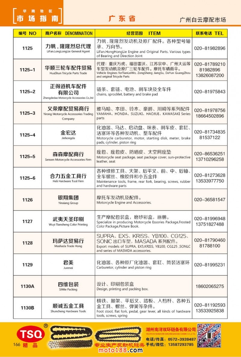 最新升級(jí)的《摩配華南市場(chǎng)指南》升級(jí)版在第76屆廣州全國(guó)摩托車及配件展示交易會(huì)上首發(fā),歡迎朋友們來3109號(hào)展位。接著將在廣州、重慶摩配市場(chǎng)全面派送,在廣州福星、松南市場(chǎng)門口、及白云三個(gè)檔口常年設(shè)立發(fā)行窗口;發(fā)行至廣州、重慶、江浙的幾大板塊主要廠家及全國(guó)的主要摩配市場(chǎng)。