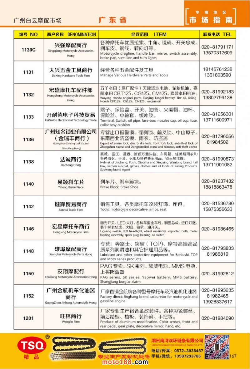 最新升級的《摩配華南市場指南》升級版在第76屆廣州全國摩托車及配件展示交易會上首發,歡迎朋友們來3109號展位。接著將在廣州、重慶摩配市場全面派送,在廣州福星、松南市場門口、及白云三個檔口常年設立發行窗口;發行至廣州、重慶、江浙的幾大板塊主要廠家及全國的主要摩配市場。