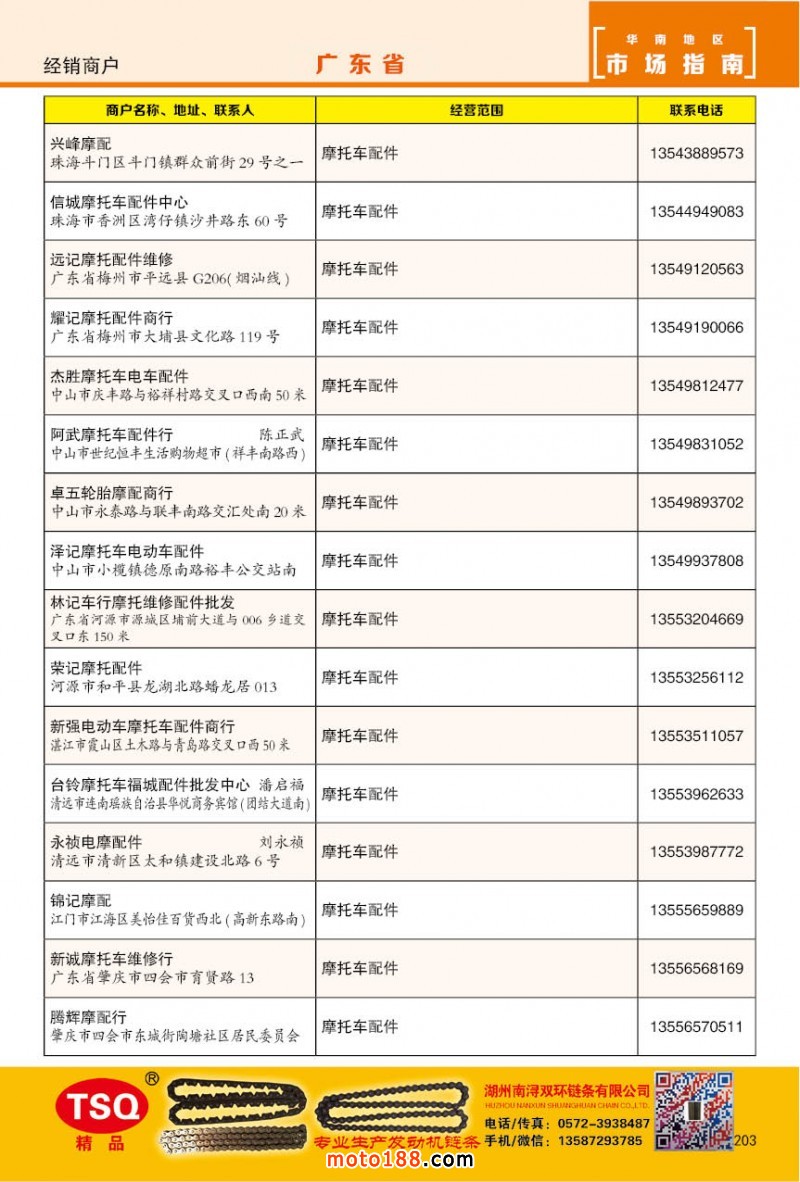 內(nèi)203 廣州市摩托車(chē)配件經(jīng)銷(xiāo)商戶