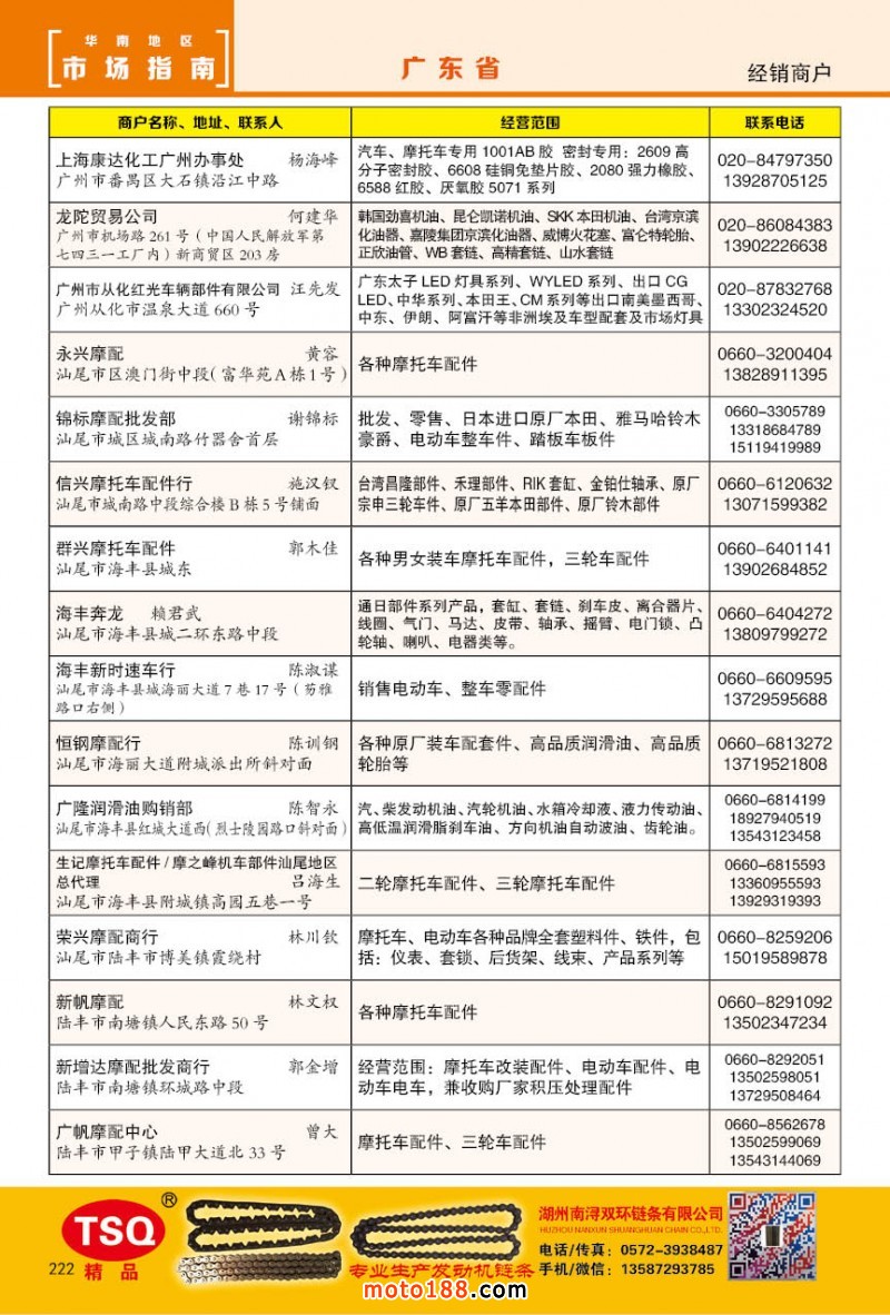 最新升級(jí)的《摩配華南市場(chǎng)指南》升級(jí)版在第76屆廣州全國(guó)摩托車及配件展示交易會(huì)上首發(fā),歡迎朋友們來(lái)3109號(hào)展位。接著將在廣州、重慶摩配市場(chǎng)全面派送,在廣州福星、松南市場(chǎng)門口、及白云三個(gè)檔口常年設(shè)立發(fā)行窗口;發(fā)行至廣州、重慶、江浙的幾大板塊主要廠家及全國(guó)的主要摩配市場(chǎng)。