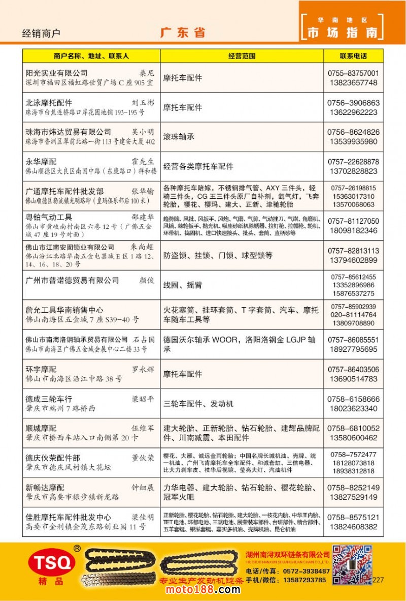 最新升級的《摩配華南市場指南》升級版在第76屆廣州全國摩托車及配件展示交易會上首發,歡迎朋友們來3109號展位。接著將在廣州、重慶摩配市場全面派送,在廣州福星、松南市場門口、及白云三個檔口常年設立發行窗口;發行至廣州、重慶、江浙的幾大板塊主要廠家及全國的主要摩配市場。